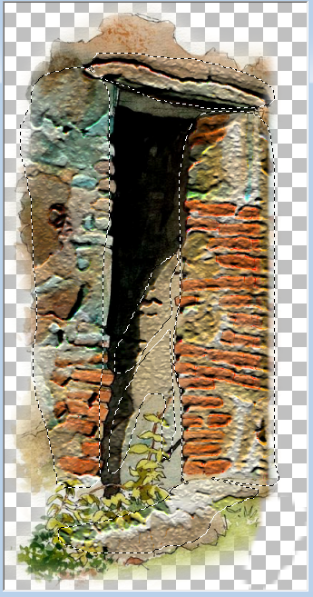 1---Ouvrir l'image de la "porteavant.jpg" offerte, dans le matériel, et faire un "tube progressif" pour avoir à peu près comme sur l'image de droite. Avec le lasso à 30 de progressivité.