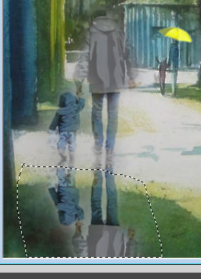 56--Image/Retourner. Avec l'outil, déplacement pour donner l'impression de voir les reflets de l'homme  dans l'eau de pluie.