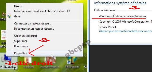 Quelle version Windows ou système d'exploitation nous avons ? 1--Clic droit sur le logo "Ordinateur" placé sur notre Bureau 2--Propriétés 3--Nous pouvons voir avec quelle version Windows nous travaillons. C'est la même chose pour Windows 10