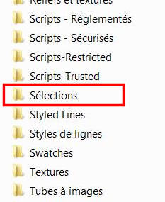 Après avoir copié "abcsceau.PspSelection" offert dans le matériel, vous rendre dans votre dossier "Sélection" de PSP, dossier qui se trouve dans "My PSP Files". Ce fichier "My PSP Files" a été créé dans "Mes documents" quand vous avez installé votre logiciel PSP