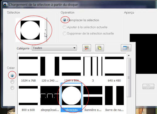 10---Calques/Fusionner les calques visibles. 11----Dans votre palette des couleurs mettre en avant-plan cette couleur : #d21e1e 12---Calques /Nouveau calque 13---Votre "Sélection" téléchargée est bien dans votre dossier Sélection ? vous allez donc chercher cette sélection préparée d'avance en faisant : Sélections/Charger/enregistrer une sélection/Charger à partir du disque.