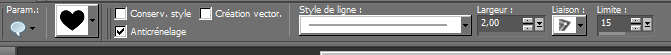 3---Activez l'outil forme prédéfinie, et allez chercher le coeur. Anticrenelage coché. Largeur 2. Tracez sur ce calque, un gros coeur sur votre fond. Bien centrer avec l'outil déplacement ou en faisant : Objet / Aligner /Centrer sur le support. Assurez-vous de prendre la bonne forme de coeur avec l'outil Forme. Le coeur se nomme " coeurs_1_P " Si vous n'avez pas cette forme, allez la chercher ICI