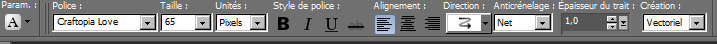 37---Effets/ Effets 3D / Découpe . V 3 H 3 Opacité 86, Flou 0 , noir. 38---Effets / Effets 3D / Ombre portée V 1 H 1 Opacité 50 Flou 0 , noir Désélectionner. 39---Activer le tube abcpspcupidon.png . Edition/Copier. Edition / Coller comme un nouveau calque. Placez comme sur l'image finale. 40---Effets/effets 3D Ombre portée V5 H8 Opacité 41 Flou 3 noir. 41---Calques /Fusionner tous . 42---Placez la texture or dans les 2 palettes des couleurs. Angle 0, Échelle 100. Utiliser la Police Craftopia Love, taille 65 ou selon votre version PSP. Épaisseur 1.0 en vectoriel. Ecrire le mot "amour amour" et bien placer dans le bas.