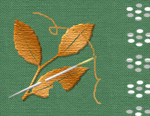 26---Quand vous êtes satisfait, vous cliquez sur la flèche ou main blanche pour enlever la grille. 27---Calques/nouveau calque raster. Placez la tuile beige dans votre palette des couleurs . Angle 0, Échelle 100. Avec le pot de peinture, Valeur RVB , Tolérance 200/ Opacité 100, colorez votre tableau. La teinte marron ou beige se place par dessus votre broderie. 2 8---Calques/agencer/déplacer vers le bas. La texture beige se place sous nos feuilles brodées.29---Assurez-vous d'être sur votre calque du haut ( celui avec vos feuilles avec la texture verte ) Effets/ Effets 3 D ombre portée V 2 H 2 Opacité 54 Flou de 4, noir. Faut bien voir que la texture verte ne soit pas à plat sur le fond beige