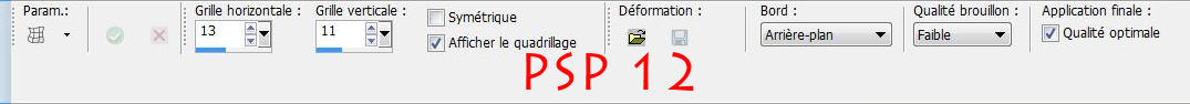 Une grille se placera sur votre travail. Prenez soin de cocher "afficher la grille" . Dans la palette des outils, mettre 13 pour grille horizontale et 11 pour grille verticale. À l'aide des petits carrés et de votre souris , déplacer légèrement les bordures du tissus pour donner un aspect naturel et un peu fripé.